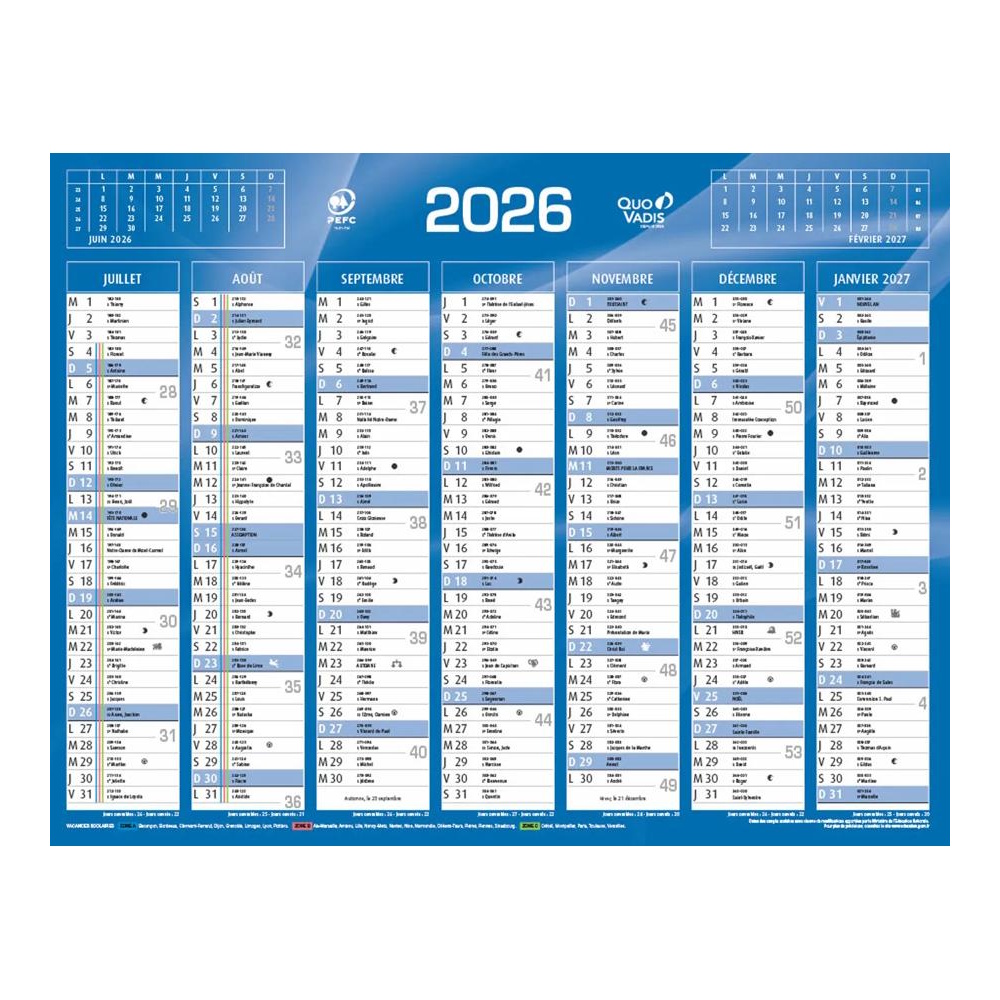 Accueil → Papeterie → Calendriers Calendrier Mural 2026 - 14 Mois - 27 x 21 cm - Couleur Bleu 4,25€ stock :10 Quantité Description Calendrier 2026 mural - Oeillet de suspension - Recto 7 mois - Verso 7 mois Dimensions : 27 x 21 cm Matière : Carton pelliculé Couleur : Bleu Fabriqué en france - Labels et Certifications : PEFC L'avis des Clients Pas de note client (Mettre un commentaire en premier) Commentaires Rédiger un commentaire