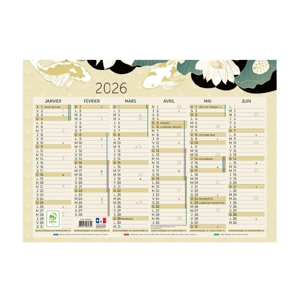 Accueil → Papeterie → Calendriers Calendrier Mural 2026 - 22 x 29.5 cm - Japon Carpes Koï 4,50€ stock :10 Quantité Description Calendrier 2026 mural - Janvier à décembre Dimensions : 22 x 29.5 cm Matière : Carton Modèle : Japon Carpes Koï Labels et Certifications : PEFC (fibres de papier issues de forêts gérées durablement) - Imprim'vert (impression respectueuse de l'environnement) L'avis des Clients Pas de note client (Mettre un commentaire en premier) Commentaires Rédiger un commentaire