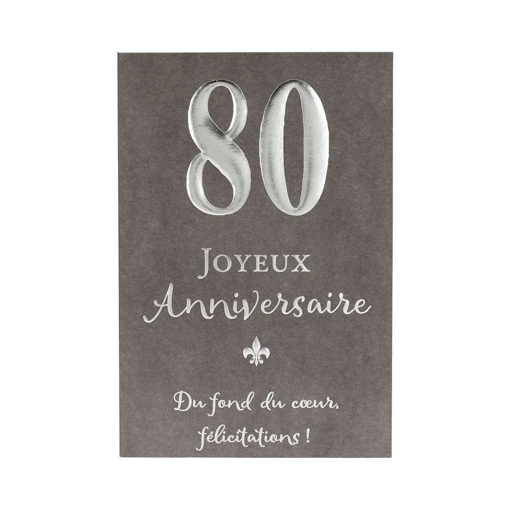 Accueil → Papeterie → Cartes de Vœux → Anniversaire Carte Anniversaire - 80 ans Joyeux Anniversaire Du fond du coeur félicitations 3,75€ stock :5 Quantité Description Détails : Carte de voeux et son enveloppe Dimensions carte : 17.2 x 11.5 cm Thème : Anniversaire Modèle : 80 ans Joyeux Anniversaire Du fond du coeur félicitations L'avis des Clients Pas de note client (Mettre un commentaire en premier) Commentaires Rédiger un commentaire
