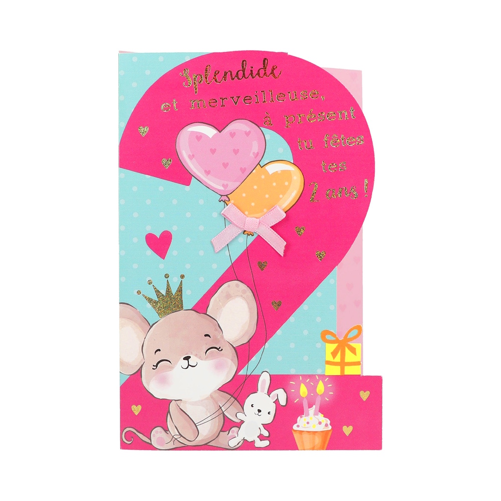 Accueil → Papeterie → Cartes de Vœux → Anniversaire Carte Anniversaire - Splendide et merveilleuse, à présent tu fêtes tes 2 ans ! 3,75€ stock :5 Quantité Description Détails : Carte De Voeux et son enveloppe Dimensions carte : 16.5 x 11.5 cm Thème : Anniversaire Modèle : Splendide et merveilleuse, à présent tu fêtes tes 2 ans ! L'avis des Clients Pas de note client (Mettre un commentaire en premier) Commentaires Rédiger un commentaire