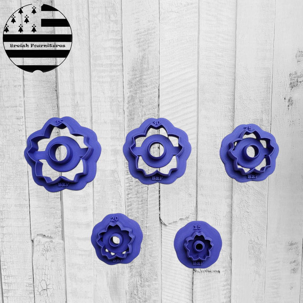 Accueil → FAIT-MAIN Créations Artisanales → FOURNITURES DIY → Emporte-pièces → Fleurs Emporte-pièce pour Pâte Polymère, Fleur Outil de Création DIY 2,75€ stock :500 taille: 15mm20mm (+0,25€)25mm (+0,50€)30mm (+0,75€)35mm (+1,00€)    En stock taillePrixQty.15mm2,75€100.20mm3,00€100.25mm3,25€100.30mm3,50€100.35mm3,75€100. Quantité Description Créez facilement vos bijoux et décorations DIY grâce à cet emporte-pièce de précision, découpe nette et précise. Parfait pour les créateurs, artisans et passionnés de loisirs créatifs 🛠️ Caractéristiques :✔️ Taille : dimension intérieure la plus large (tolérance de +/- 1mm)✔️ Bord fin pour une découpe précise et nette✔️ idéal pour la pâte polymère, la pâte à modeler, la porcelaine froide et d’autres matériaux✔️Matériau : PLA éco-responsable, non polluant, non toxique. 100% biosourcés, étant issu de ressources renouvelables telles que le maïs ou la canne à sucre.🧼Conseils d’utilisation :• Cf Guides en photo.• Lavable et réutilisable, Nettoyage à la main uniquement, à l'eau tiède savonneuse ou lingettes humides.⚠️ Information importanteNe pas mettre au lave-vaisselle - Ne pas exposer à une source de chaleur élevée - Usage non alimentaire – destiné aux loisirs créatifs. ⚓ Fabriqué avec soin dans mon atelier en France, Bretagne 📦 Expédition soignée en suivi🎨 Personnalisation possible ! Besoin d’une taille spécifique ? Contactez-moi pour une commande sur mesure !📩 Besoin d'aide ?Une question, un souci avec votre commande ? N’hésitez pas à me contacter, je serai ravie de vous aider et de trouver une solution ! 😊 L'avis des Clients Pas de note client (Mettre un commentaire en premier) Commentaires Rédiger un commentaire