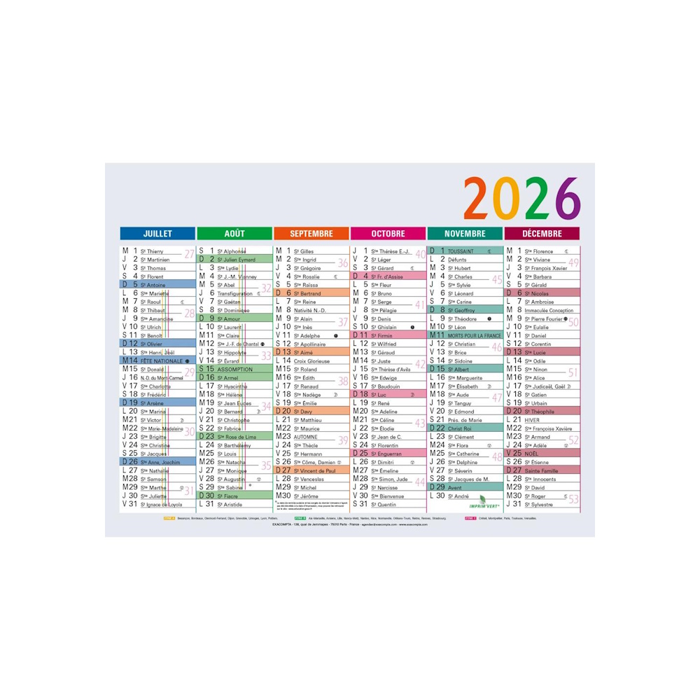 Accueil → Papeterie → Calendriers Petit Calendrier Mural 2026 - 13 x 17 cm - Multicolore 3,00€ stock :2 Quantité Description Calendrier 2026 mural -12 mois Janvier à Décembre Dimensions : 13 x 17 cm Matière : Carton Labels et Certifications : PEFC (fibres de papier issues de forêts gérées durablement) - Imprim'vert (impression respectueuse de l'environnement) L'avis des Clients Pas de note client (Mettre un commentaire en premier) Commentaires Rédiger un commentaire